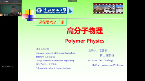 4月11日上午,校级课程思政示范课云端公开课第六讲开课。材料科学与工程学院富露祥副教授通过“腾讯会议”的直播方式,分享了《高分子物理》课程思政教学改革。该门课程是高分子材料与工程专业的专业基础课,2006年被评为省级精品课程,2020年获批校级“课程思政示范课程”,2020年被辽宁省教育厅认定为省级一流本科课程(线下课程)。