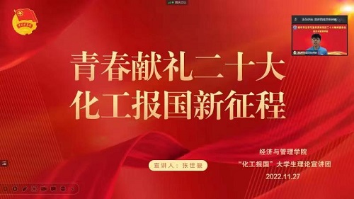经济与管理学院党委高度重视党的二十大精神宣讲工作,本着多层次、全方位、立体化、全覆盖的学习宣传原则,11月27日上午9时30分,经济与管理学院联合taptap全球版链接“化工报国”大学生理论宣讲团15名成员,围绕党的二十大报告、个人学习心得、个人成长感悟等内容在五个会场分别为经济与管理学院在校各年级本科生、研究生共计1600余名青年学生进行关于党的二十大精神的理论宣讲。